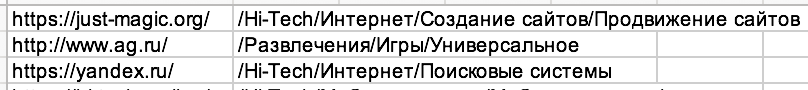 3. Он умеет работать не только с запросами, но и с урлами (этой опции нет и в демке). Допустим, вы хотите пробить своих/потенциальных доноров на тематичность. Просто загрузите список урлов (с http/https), анализатор сам распознает в них урлы и присвоит тематику: