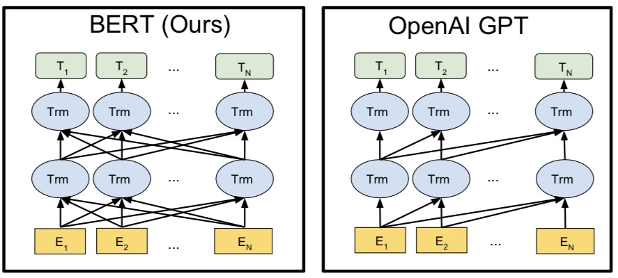 И наконец Bidirectional - означает двунаправленный анализ последовательностей слов. Та же самая архитектура Transformers использовалась в GPT от OpenAI и фактически BERT является ее развитием. В отличие от GPT, в BERT связи между словами рассматриваются как слева-направо, так и справа налево: