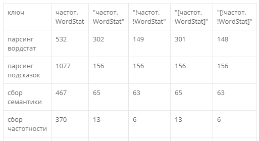Во втором и далее - соответствующая цифра частотности wordstat (если соответствующий тип частотности выбран)